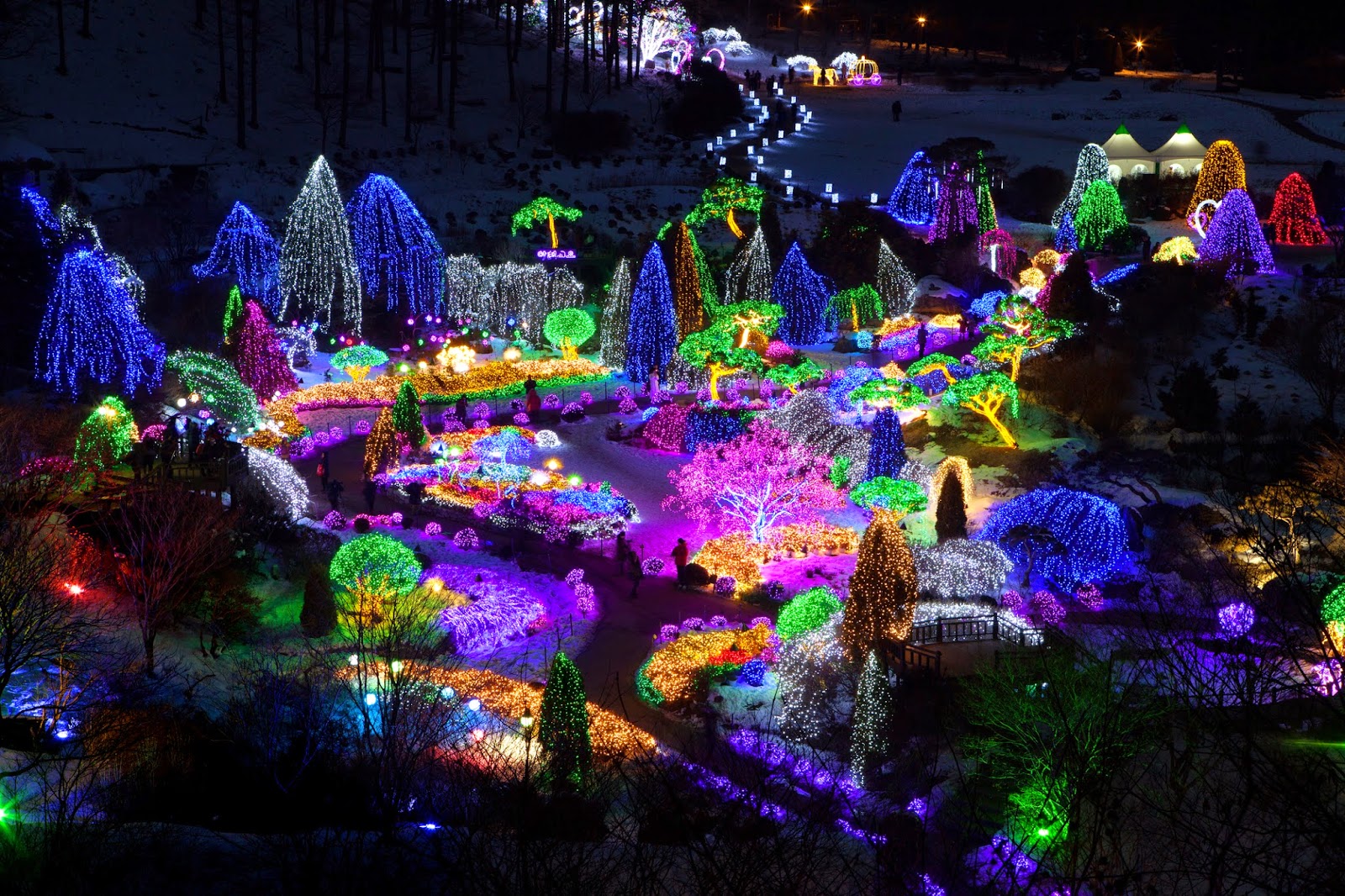晨靜樹木園冬日限定的五色星光庭園展在網絡上擁有超高的人氣,夜晚共有約300萬個的燈泡同時點亮。