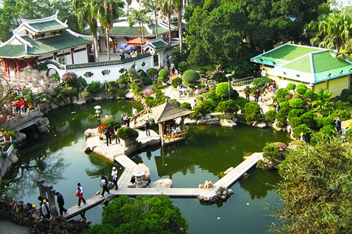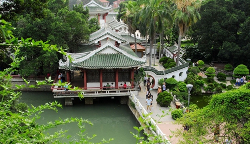 全園構造有動有靜,依山傍水,亭台樓閣相映成趣,綠蔭環繞,伴著陣陣悠揚的鋼琴聲,如同世外桃源。