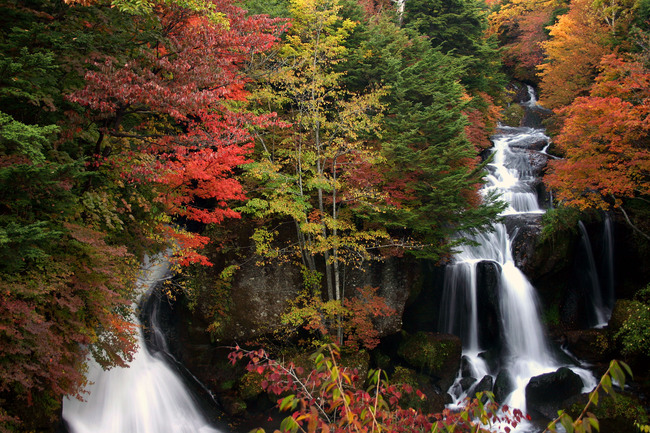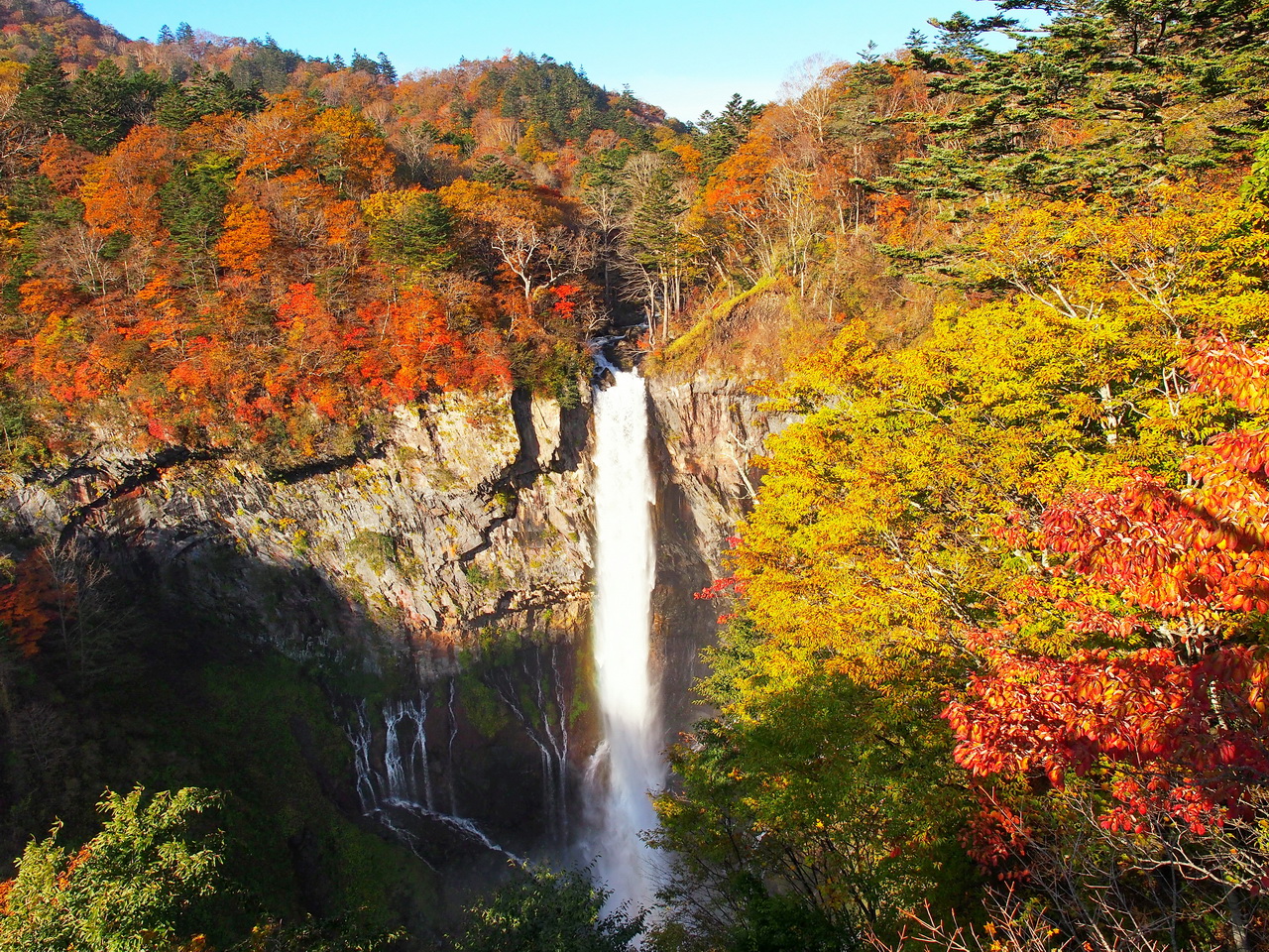 華嚴瀑布是日本的三大瀑布之一,從中禪寺湖流出的湖水沿著岩壁留下來,非常的壯觀。可以坐纜車到山頂,在懸崖邊上從上面俯瞰瀑布。旁邊還有電梯可以坐到一百公尺以下的觀瀑臺,從瀑布底下近距離觀看,感受其氣勢。