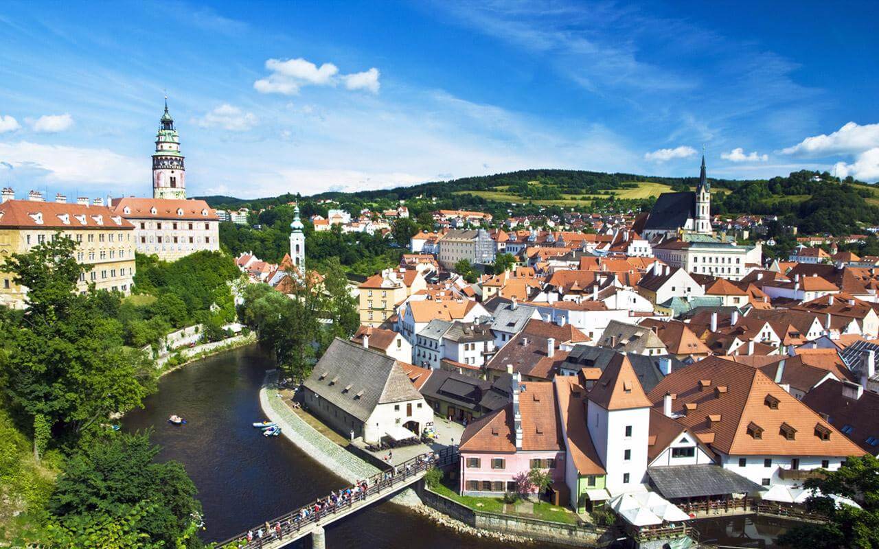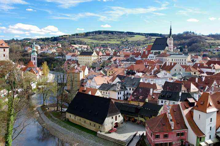 作為世界文化遺產,除了指定許可車輛,外來的車輛幾乎絕跡。這個被伏爾塔瓦河(Vlata River)蜿蜒圍繞的小鎮建於 13 世紀,城中建築多為哥特式和巴洛克式風格,大片的紅頂老房子維持著中世紀的風貌。