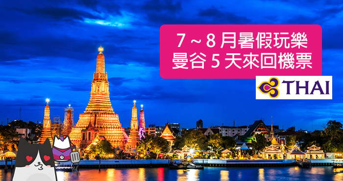 7、8月暑假絕對是旅行的大熱旺季,TravelLiker就為大家精選了一系列7、8月泰國曼谷5天來回機票,票價低至$1,870起,包20kg行李寄艙,有效期5天,訂票日期即日至2016年08月19日,優惠機位有限訂票就盡早了。